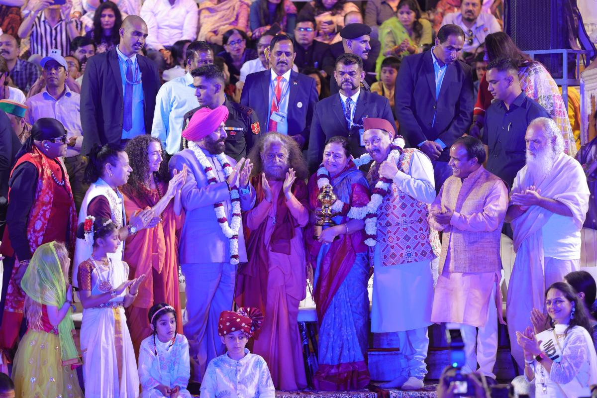 The closing ceremony of the International Yoga Festival witnessed the esteemed presence of the Honorable Governor of Uttarakhand, Lieutenant General (Retd.) Shri Gurmit Singh Ji, H. H. Swami Chidanand Saraswati Ji, President of Parmarth Niketan, Pujya Sadhvi Bhagwati Saraswati Ji, Director of the International Yoga Festival, Uttarakhand’s Honorable Cabinet Minister Shri Dhan Singh Rawat Ji, Padma Shri Kailash Kher, Mata Shri Mangala Ji, Founder of Hans Foundation, Shri Bhole Ji Maharaj, Prembaba, Padma Shri Shri Shivamani, renowned drummer and tabla player, Runa Rizvi, Sufi singer, Mrs. Deepa Dhansingh Rawat Ji, and other distinguished dignitaries.