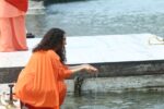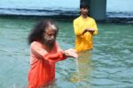 Sadhvi Bhagawatiji shared ecstatically while bathing in the waters, “What an amazing, BLESSED day! Today is Ganga Saptami, the day we celebrate our Sacred Mother Ganga coming onto Earth. And on this day, she is dancing. Her waters are clear, clean and bright. She is flowing with amazing strength and speed, nourishing all of us. She continues to flow as always, but at this moment, after more than a month of lockdown, we get to see her beauty as it should be, untainted by pollution. It makes us realize, WE are the problem! When we are locked up, when we can’t shop, consume or produce, Her waters are clean! Let’s make a pledge to protect her radiance and to make whatever sacrifices necessary to keep Her flowing clean and clear even if it means we must produce less, consume less, shop less, and especially waste less!”