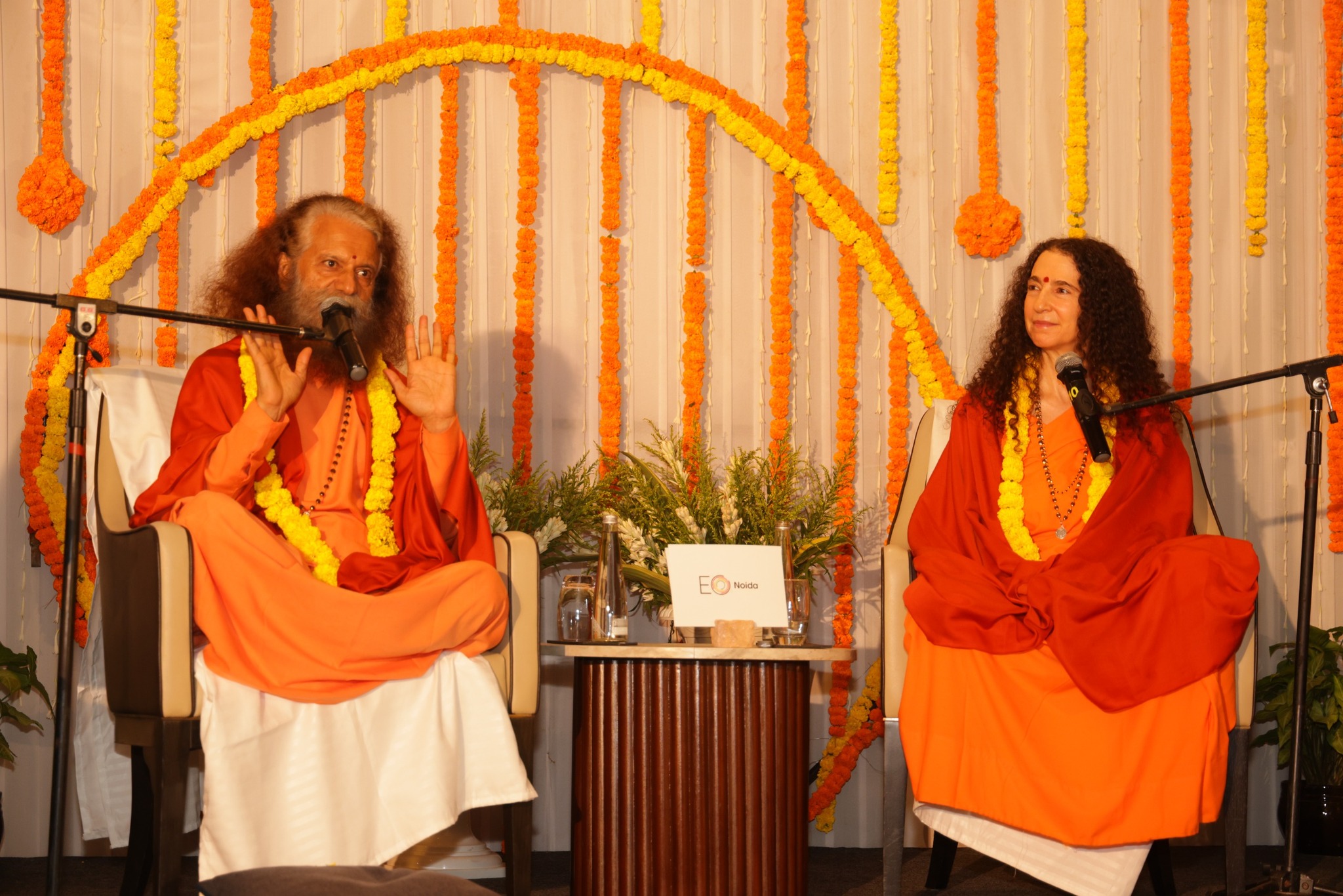 At the Longchamp Hall, Taj Mansingh, New Delhi, EO Noida #EONoida hosted this unique spiritual program, where two global divine voices from the East and the West came together on one stage. Both Gurus shared profound insights on life’s purpose, service, and inner strength.