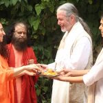 First reverence was offered to Pujya Swamiji; thereafter Sadhvi Bhagawatiji offered the tilak, flowers and Aarti to Bhārat Mitraji, President of ORGANIC INDIA, who joined the celebrations with his team from UPLIFT and Good Deeds. The Rishikumars and sevaks completed the beautiful ceremony admist divine vedic chanting and collective prayer.