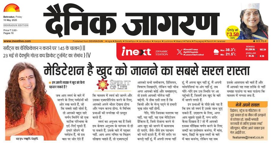 “मेडिटेशन है खुद को जान्ने का सबसे सरल रास्ता”, Spirit of Life in Dainik Jagran