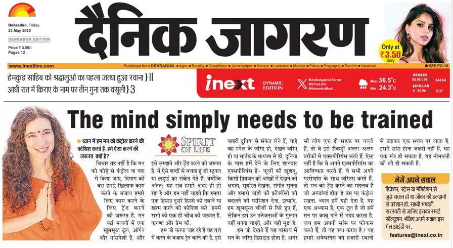 “सुकून के लिए मन को नियंत्रित नहीं, प्रशिक्षत करें”, Spirit of Life in Dainik Jagran