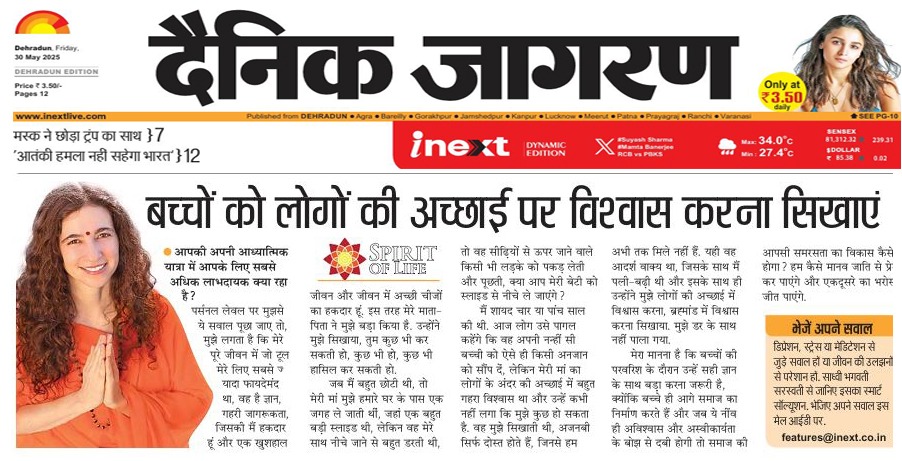 “बच्चों को लोगों की अच्छाई पर विश्वास करना सिखाएं”, Spirit of Life in Dainik Jagran