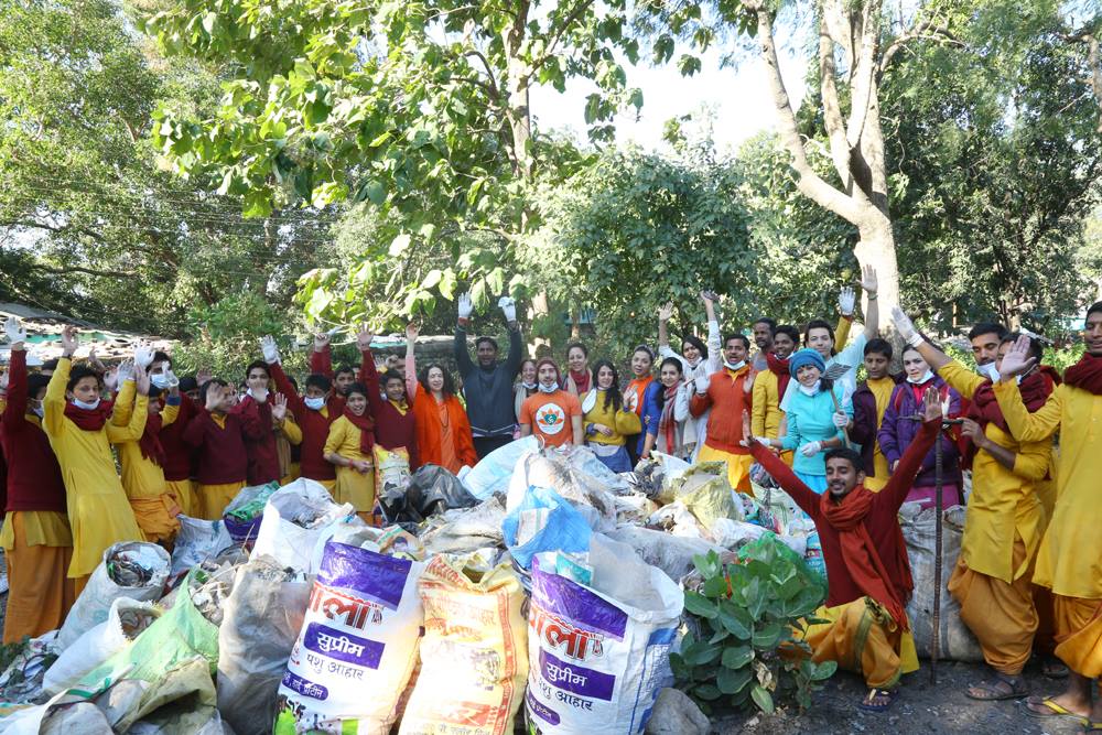 A special morning clean up took place in Rishikesh as Parmarth Rishikumars joined volunteers from around the world and volunteers of Parmarth Niketan to clean up the Rishikesh Swargashram Region.
