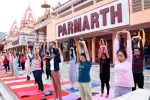 RISHIKESH: This morning, after the successful completion of the week-long festivities and celebrations of the International Yoga Festival (IYF) from 8th-14th March at Parmarth Niketan, in which 1500 participants from nearly 90 countries joined together to practice yoga on the holy banks of Mother Ganga, the Yoga lovers from across the world came together once again at Parmarth Niketan, Rishikesh for the curtain raiser of the 100 day countdown to the International Day of Yoga (IDY) 2023 in partnership with the Morarji Desai National Institute of Yoga (MDNIY) , New Delhi, Ministry of AYUSH, Government of India. A special program of the Common Yoga Protocol was led by Dr Ishwar Basavaraddiji, Director of Morariji Desai, in the divine presence of Pujya Swami Chidanand Saraswati Ji, President of Parmarth Niketan and Pujya Sadhvi Bhagawati Saraswati, Director of International Yoga Festival.
