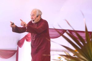 At 11am, this year’s Spiritual Lecture Series commenced with highly-motivational addresses by Dr. Bruce Lipton, Bharat Mitra, Prince Ea and Sadhvi Bhagawati Saraswati exploring the universal truth that “We Are One!” Said Bruce Lipton about Yoga and Union: “What happens here at Parmarth Niketan is the harmony of love, consciousness and community. What is Yoga? Unity. Union. Coming together. You are creating a union of consciousness. And what happens when we all come together in harmony? The more power that we wield. Each of you is a seed of evolution, and where are you getting your strength from? Yoga! It’s not just the body, it’s the Creation. I want to thank every one of you because when I come to this environment, to the International Yoga Festival, to Parmarth Niketan, I can feel the evolution. The energy is so strong I have good vibes. Because your energy is harmonizing with the energy of love, peace and evolution. And, so I want to thank every one of you. Each one of you is a seed of evolution that can bring us back to the garden that we came into before separation. Union. Unity. Yoga. Thank you for participating in our world.”