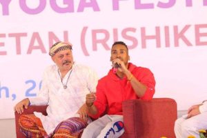 Hon’ble Shri Prem Chand Agarwalji, Speaker of the Uttarakhand Legislative Assembly, echoed Hon’ble Shri Patelji’s sentiments, stating: “First of all I’d like to welcome all my brothers and sisters from all over the world and thank them for their presence in this divine place of Uttarakhand. Every year we get an opportunity to meet and greet people from different countries, and even today – as we all know that people from 56 people are present here – it feels as though the entire Universe is in the lap of Rishikesh. I’d also like to offer him my hearty thanks and congratulations for all of the work that He’s done for water, education and the environment. He hasn’t limited His work to just the International Yoga Festival; He addresses so many social topics and concerns.