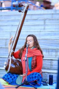 The morning asana classes began with Vinyasa – Align Up with Your Highest Self Workshop: Clarity in Your Calling with Katie B. Happyy and Paula Tapia’s Therapeutic Yoga Flow, along with Sukshma Yoga with Ganga Nandini and Kia Miller’s amazing Awakening the Higher Qualities of the Heart practice. In addition, Anandra George led a Sunrise Nada Yoga class, with musical vibrations that elevated those on the ghat and anyone in hearing distance with their brilliant tones.