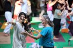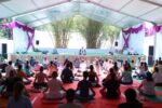 In the afternoon asana sessions, Sri H.S Arun, internationally renowned Senior Iyengar Yoga teacher from Bangalore, taught numerous twists enabling one to ‘Live at Present’ in his session called “Untwist the Twist”. Swami Svatmananda returned with a session on Vedanta: The Ultimate Pursuit of Man”. He explained how Vedanta, an ancient Hindu Sadhana, is the pursuit of knowledge into the Brahman and the Ātman. Participants had the unique opportunity to understand how one can awaken their consciousness through practice in a session by Jai Hari Singh, Chairman and CEO of the Yogasomostodos Foundation. The session on “Heart Chakra Balancing” was conducted by the world-renowned Yogrishi Vishvketu, founder of Anand Prakash Yoga Ashram. The final session of the afternoon called “Voicing the Sounds of Your Chakra ” was conducted in the Sacred Sound Stage by Gumi and Hiroko of Japan.