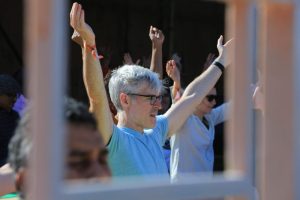 The day’s very special guest, Dr. Michael Beckwith of Agape International Spiritual Center in Los Angeles, then led the gathering in a magnificent prayer, sharing “All the love, all the joy, all the beauty, all the wisdom it’s all here and right here, right now, and we recognize this. At this moment we feel a deep feeling of unity of a lifetime which is the light of God. This consciousness of unity in one. We are all one, we are not separate, we all come from the one source of light which is God – this is Yoga.”