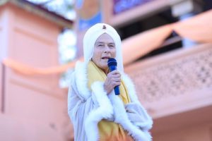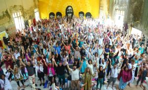 4 MARCH 2020 RISHIKESH INDIA: On the 4th Day of the International Yoga Festival organised by Parmarth Niketan, in association with Incredible India, hundreds of yoga practitioners trekked to the Maharishi Mahesh Yogiji – Beatles Ashram for a beautiful two-hour session featuring Kirtan, Meditation and Asana practice on the historic grounds and amidst the art and architecture of the ashram that lured the Beatles to Maharishi Mahesh Yogiji’s blessed home for enlightenment and, in so doing, forever cemented Rishikesh in the minds of yoga and meditation lovers the world over. Led by HH Pujya Swami Chidanand Saraswatiji, President of Parmarth Niketan and Sadhvi Bhagawati Saraswatiji, Director of the International Yoga Festival at Parmarth Niketan the event is traditionally one of the most-popular on the roster of Yoga Festival activities, and this year was no exception.