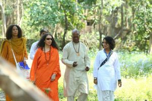 Pujya Sadhviji led the enthralled gathering in a beautiful guided meditation that offered empowerment and manifestation. She entoned, “ In this sacred place, where the Beatles came as musicians and wrote beautiful music that touched the world, allow yourself to also be a vehicle in whatever way the life force wants to use you – whether it’s music, or art, or education, or science, or technology, or leadership or on the ground sacred seva, whatever way that sacred energy wants to use you, open yourself to it.”