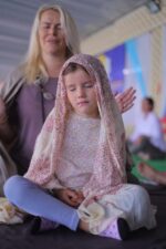 Claire Missingham (Jahnavi Devi) who has been teaching Yog for the past 24 years internationally, and is sharing her vinyasa style with students at the IYF, when asked what teaching she feels is most relevant for the current cultural moment, said, “Currently I think the teachings from the Upnishads are especially relevant for me, remembering the connection between the 4 states of consciousness and that everything has it’s cycle, yet, it is in the quiet moments, the reflective ‘inhalation’ of silence that Shakti has her powerful opportunity to create something new, and change, and grow. This teaching of OM reminds me that all will evolve, inside and outside, through moments of stillness and listening.”