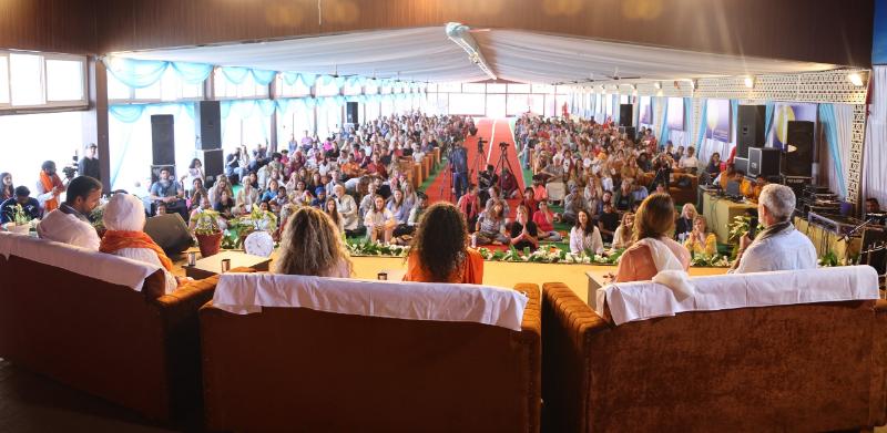 After lunch, participants joined Pujya Sadhviji in a special satsang, a spiritual question and answer session where students sit in the presence of wisdom with whatever appears to block their spiritual path. Meanwhile, Vaidya Dr. Padma Nayani Raju dived deeply into what Ayurveda can offer women, specifically, in her lecture and workshop, “Synergy of Ayurveda with Women’s World.” Dr. Padmaji has been trained in Ayurveda since childhood and holds a BAMS in Ayurveda from Rajiv Gandhi University of Health Sciences, Karnatika, and was an illustrious panelist on Day 4’s Wisdom Talk, the “Power of Ayurveda to Heal.”
