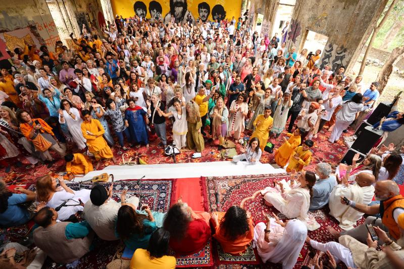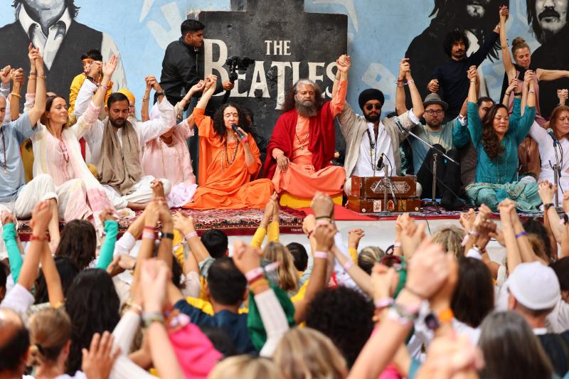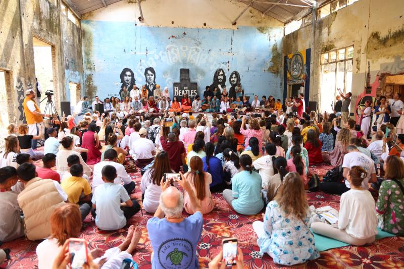 RISHIKESH: A very Special concert took place with International Yoga Festival participants and presenters from across the globe today to the Maharishi Mahesh Yogi Ashram, popularly known as the Beatles Ashram. The participants immersed in the historic Ashram’s sacred energy where the great Saint Maharishi Mahesh Yogi once lived, practiced and taught Transcendental Meditation and was also home for sometime to the world famous Beatles. Musicians from across the globe came together to sing for peace and love. MC YOGI, Gurnimit Singh, Daphne Tse, Joseph Schmidlin, Sudhanshu Sharma, Sandra Barnes, and so many more sang sacred mantras and “Imagine” by the Beatles together.