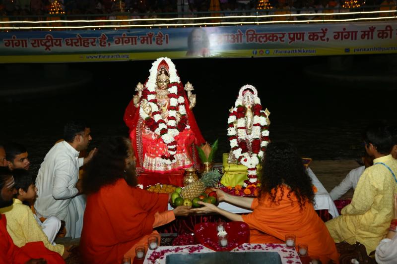 This Deepawali, HH Param Pujya Swami Chidanand Saraswatiji and Pujya Sadhvi Bhagawati Saraswatiji, Presidents of Parmarth Niketan and Divine Shakti Foundation, led prayers for India’s prosperity at the banks of the Ganga. With the sacred sound of Vedic mantras and conch shells, the courtyard of Parmarth was lit with the glow of lamps and the spirit of unity. People from around the world gathered, symbolizing the power of collective devotion and peace.