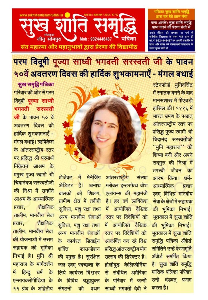 “परम विदुषी पूज्य साध्वी भगवती सरस्वती जी के पावन ५०वें अवतरण दिवस की हार्दिक शुभकामनाएँ”, Sukh Shanti Shamrudhhi