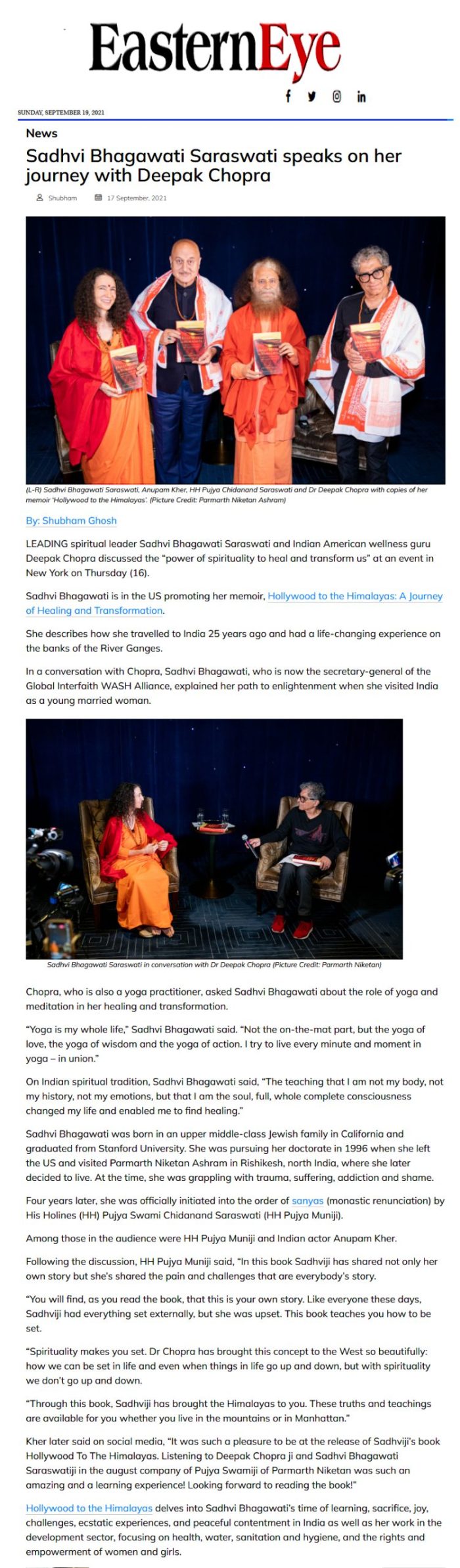 “Deepak Chopra, Sadhvi Bhagawati Discuss Newly Released Book ‘Hollywood to the Himalayas'”, News India Times