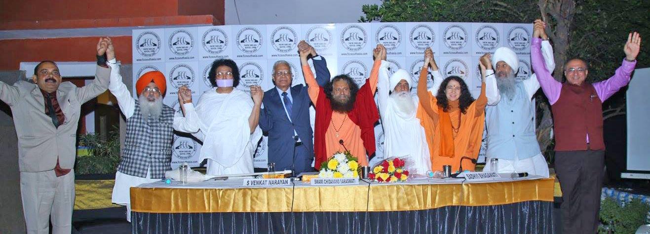 Pujya Swamijispoke at the Foreign Correspondents Club of South Asia (FCC) in New Delhi recently at a special event organised by FCC and FICCI on the theme of Clean Ganga, Climate Action and Swachh Bharat. Sadhvi Bhagawati Saraswatiji, Secretary-General GIWA and some of the GIWA’s faith leaders, Bhai Mohinder Singhji, Acharya Dr. Lokesh Muniiji, Bhai Sahib Satpal Singhji, Paramjit Singh Chandhokji, President FCC S. Venkat Narayanji, Senior Director FICCI Nirankar Saxenaji came together with Pujya Swamiji to share about GIWA’s recent interfaith events in Varanasi, Rishikesh and Bombay dedicated to these vital national campaigns.