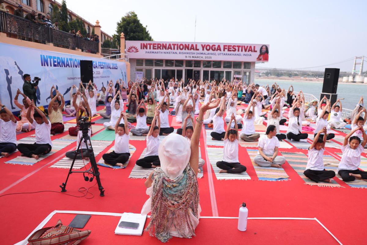 RISHIKESH: After a vibrant first day of 37th International Yoga festival at Parmarth Niketan Ashram, which was inaugurated by the Chief Minister of Uttarakhand Pushkar Singh Dhami ji and blessed by HH Pujya Swami Chidanand Saraswatiji, Pujya Sadhvi Bhagawati Saraswatiji, Jaya Kishori ji alongside over 1000 participants from 50 nations, 75 yoga teachers from 25 countries. The inauguration concluded with a beautiful Ganga Aarti and a the special bhakti filled evening kirtan by Gaura Vani and his team of musicians and artists. The second day of the Yoga Festival began with an early morning Sadhana from 4am was filled with diverse offerings that included sacred music, raagas, yoga, ayurveda and wellness sessions by presenters.