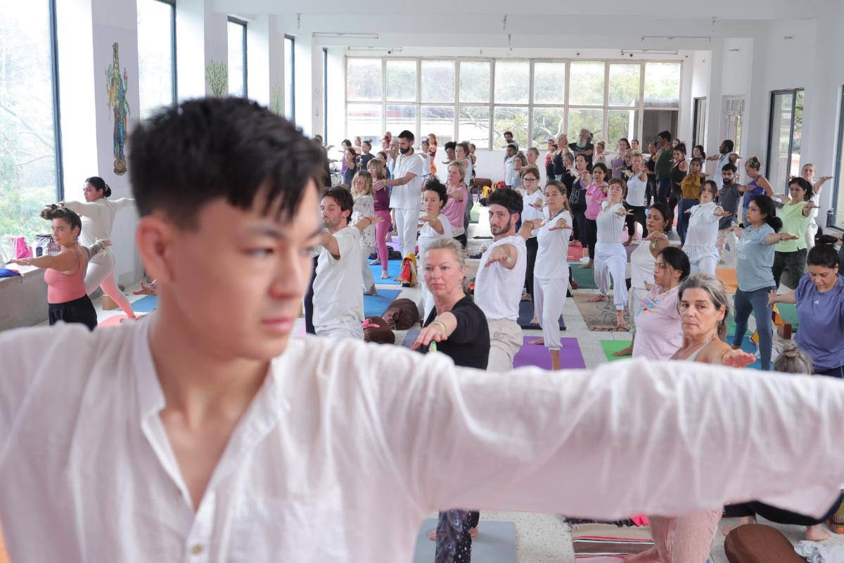 Throughout the rest of the day, Following a nourishing lunch, participants were immersed in a series of different inspiring yoga sessions led by esteemed teachers, Including Bhogi to Yogi, a journey of self-transformation, and an enlightening Yoga Therapy session by Mohan Bhandari, focusing on healing through mindful movement and breath; Rhythmic Vinyasa- collective Flow for all by Shiva Rea. Participants also delved into ancient healing practices with a Yin Chakra session, uncovering the deep secrets of restoration and balance. Additional classes explored themes of discovering oneness, healing through Vinyasa, and connecting to the throat chakra, as well as a profound session that opened the gateway to the soul. Each class offered a unique path to self-discovery, healing, and spiritual growth, especially the sound healing bath session with Astrid Slegten and Sandra Barnes.