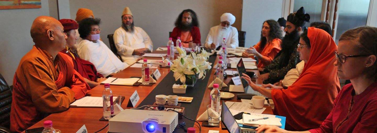 Interfaith leaders taking part in the discussions included: HE Drukpa Thuksey Rinpoche, Bhai Mohinder Singhji, Ven Bhikkhu Sanghasenaji, Dr.Kalbe Sadiqji, Sufi Chishtiji, Acharya Dr. Lokesh Muniji, Imam Umer Ahmed Ilyasiji and Swamini Adityananda Saraswatiji