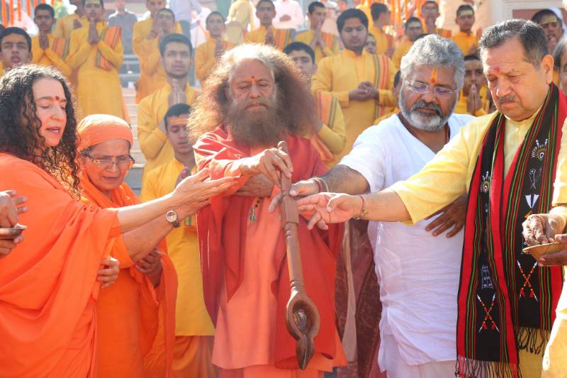 Swami Chidanand Saraswatiji declared that “the time has come to make a call from this holy bank of Ganga and the holy plains of the Himalayas. Prime Minister of India, Shri Narendra Modi ji, is raising the prestige of India throughout the whole world. Only India can give the mantra of peace to the whole world because India is not a piece of land but a land of peace and the mantra of India is Vasudhaiva Kutumbakam. Let us take a pledge that we will always maintain the honor of this motherland, offering development and heritage together.