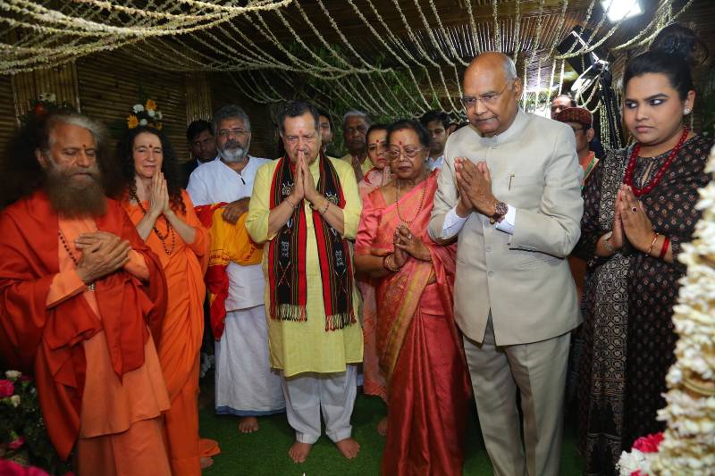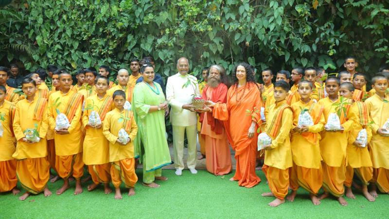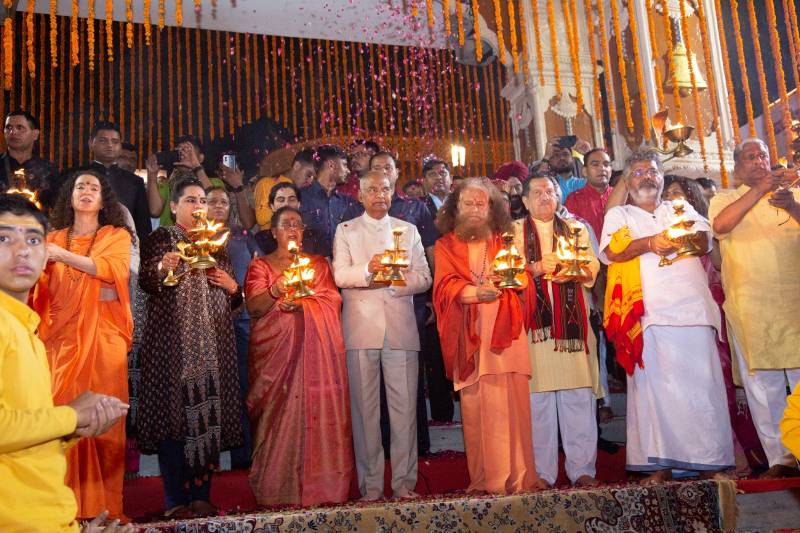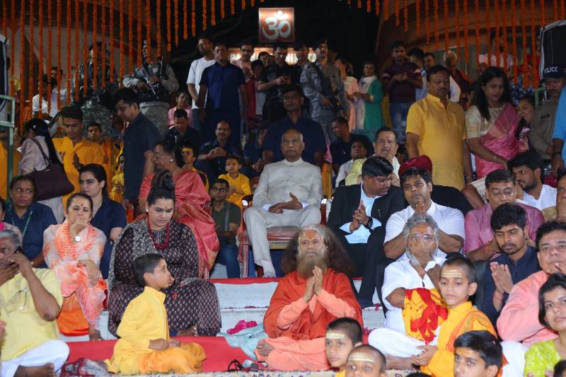 During the Sacred Ganga Aarti, the Honorable Shri Ramnath Kovind Ji said that “Ganga Aarti is a tradition that has been going on for years, presented on the holy banks of Mother Ganga. It is a coincidence that today – Pujya Swamiji’s birth anniversary – the Ganga Aarti has completed 25 years. If anyone deserves credit for the continuity of this sacred tradition, it is Swami Chidanandji. Today I have no words to praise his work. But know that lakhs of devotees from India and abroad come here. This is a direct testament of that.”