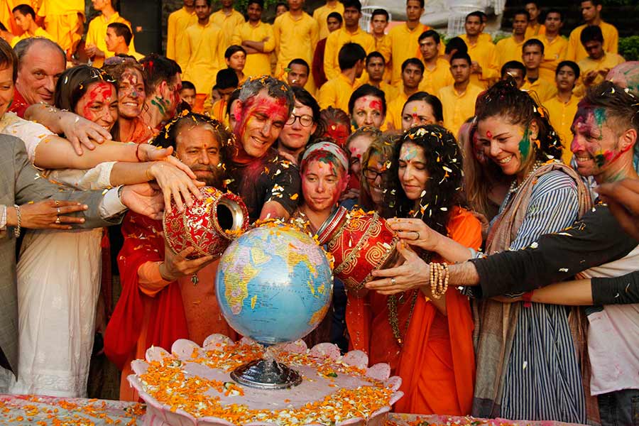 Pujya Swamiji blessed everyone with words of inspiration and upliftment: “It is so beautiful how we have come together — the global connected to the local! All of our brothers and sisters from abroad with our brothers and sisters from these sacred Himalayas. It is this connection of the global with the local that leads to true union (yoga), of the north and the south, the east and the west. inspiring and uplifting each other in times of disaster, like the recent floods, and also in times of celebration. Let this Holi celebration be one in which we play together, pray together and pledge to work together to bring strength and stability back to this rich, traditional and sacred land which is home to people from all walks of life.”