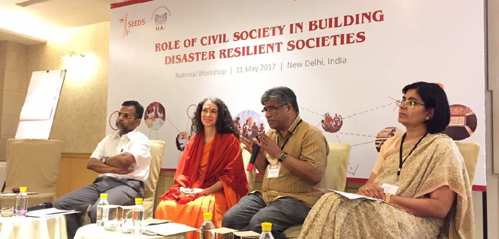 Sadhvi Bhagawati Saraswatiji addressed a conference by Humanitarian Aid International on the important role of faith based organizations and civil society organizations in Disaster Risk Reduction. Her high level panel was chaired by eminent journalist Shri Vir Sanghvi and also included Dr. V. Thiruppagazh, Joint Secretary National Disaster Management Authority, Govt of India, Shefali Chaturdevi, CEO, CII Foundation and Jagadananda, co-founder CYSD and former Odisha State Information Commissioner. Member of Parliament Shashi Tharoor and many other top representatives from Civil Society and NGOs were also present. She represented the faith sector, sharing the incredible work of the Divine Shakti Foundation and the Global Interfaith WASH Alliance.