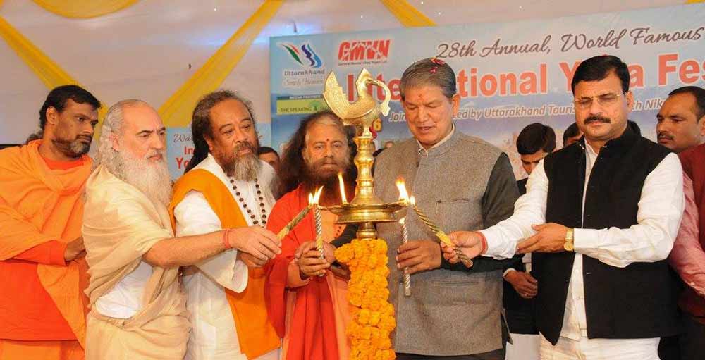 The Honourable Chief Minister, Shri Harish Rawat said: ” I welcome our friends, brothers and sisters from more than 70 countries. Although we have the worlds’ nationalities represented today, here on the banks of Mother Ganga, in the lap of the Himalayas, we are merged into the universal nationality of Yoga. I express my gratitude to Pujya Swamiji who has truly dedicated His life to yoga for sharing the great teachings and bringing so many people to Rishikesh for this event. We look forward to working with him to create a annual Yoga Calendar for the state of Uttarakhand, celebrating and organizing more of these festivals in more and more parts of Uttarakhand as well as organizing workshops and courses for our own officials.”