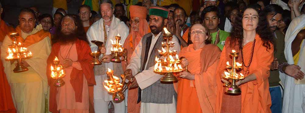 After the inaugural programme there was a divine Ganga Aarti ceremony on the Sangam, joined by Pujya Swami Durganandaji and members of more than 15 countries. Pujya Swamiji emphasized that time has come to develop Uttarakhand as an eco-tourism destination for the world by inviting and sustaining spiritual, cultural and wellness tourism.