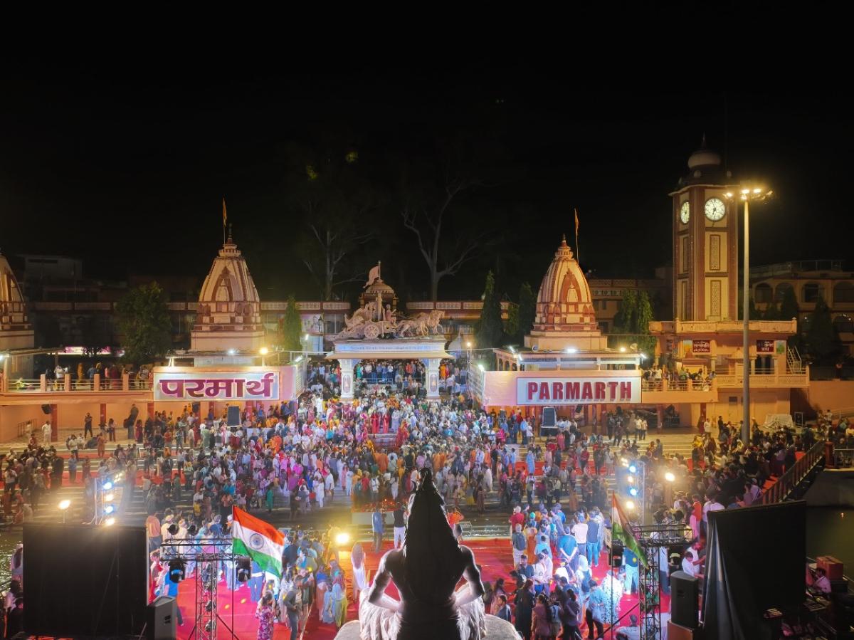 RISHIKESH: The fourth day of the 37th annual International Yoga Festival at Parmarth Niketan saw approximately 1,200 yogis from 75 countries, united under one banner of health and wellness. After a powerful evening Ganga Aarti with the Hon’ble Minister of Uttarakhand Shri Ganesh Joshiji visiting and inviting everyone to Mussoorie and welcoming them to visit more of the Himalayan State of Uttarakhand. He also emphasized that in addition to the state being rich in medicinal herbs it is also rich in millets. It was shared with him that the participants of the Festival are getting millets from Uttarakhand in their breakfast every morning. Singer, song-writer and famous rapper Raja Kumar also joined Pujya Swami Chidanand Saraswatiji and Pujya Sadhvi Bhagawati Saraswatiji.for the Aarti and offered a very powerful performance of her new album from Kashi to Kailash, bringing participants to their feets in divine dancing and sacred movement.