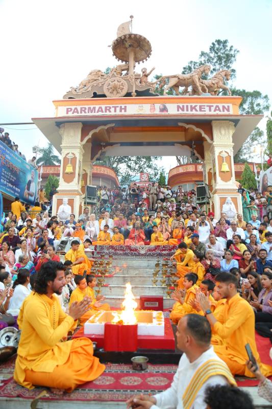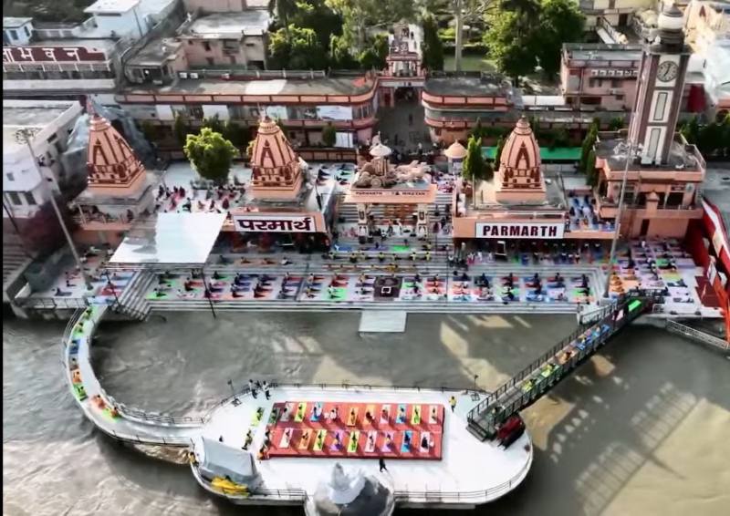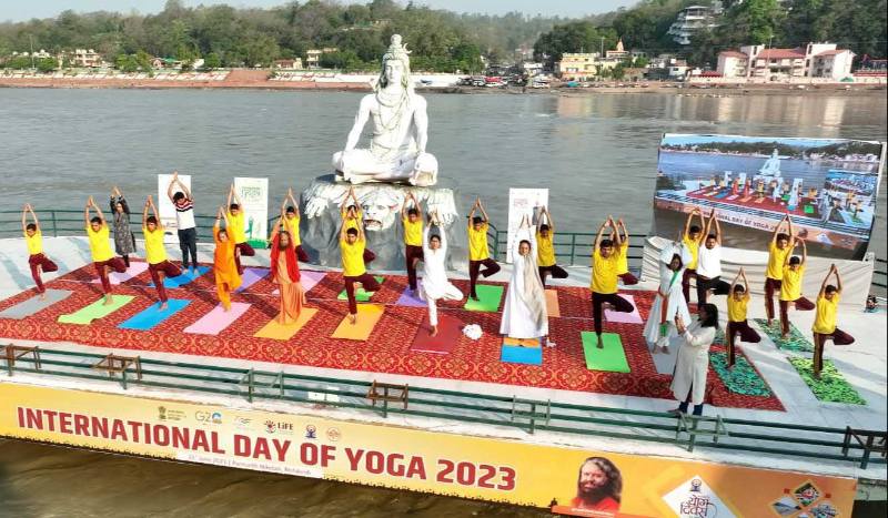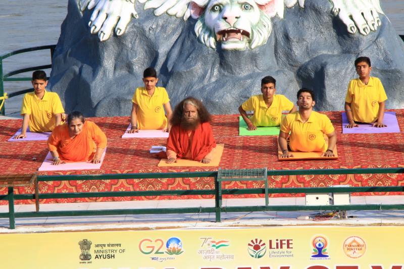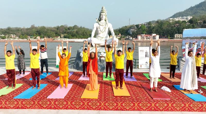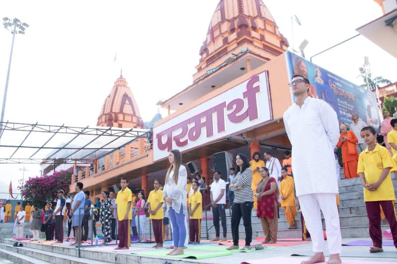 अन्तर्राष्ट्रीय योग दिवस-2023 का दिव्य और भव्य आयोजन परमार्थ निकेतन गंगा तट पर परमार्थ निकेतन के अध्यक्ष स्वामी चिदानन्द सरस्वती जी, कथा वाचक गुरूमाँ चैतन्य मीरा जी, सोशल बिहेवियर चेंज स्पेशलिस्ट यूनिसेफ इंडिया सुश्री शालिनी प्रसाद, और वॉश नोडल यूनिसेफ इंडिया श्री गोपाल बंसल जी के पावन सान्निध्य में अनेक गुरूकुलों के विद्यार्थियों, आचार्यों, देश-विदेश से आये पर्यटकों ने सहभाग कर योग प्रोटोकाॅल का अनुकरण किया।