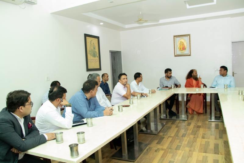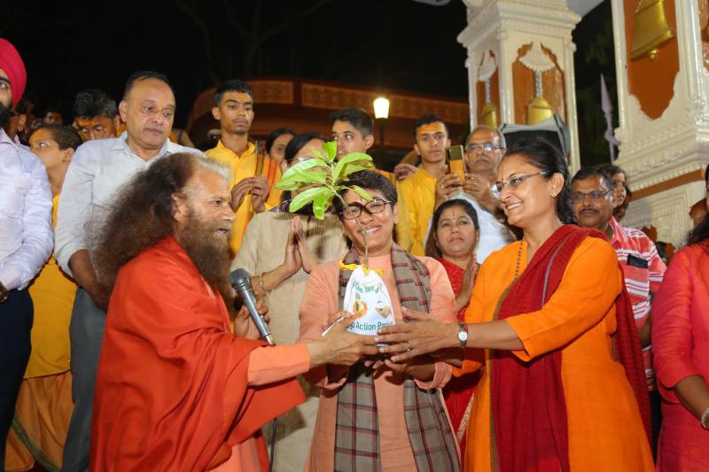 Pujya Swamiji also shared about the tree plantation plans for the upcoming monsoon season and how on the eve of Yoga Day yesterday a special tree plantation programme was held in a village near Neelkanth Mahadev Mandir. He mentioned that there would be the plantation of 1000 Rudraksha saplings there this monsoon for a beautiful Rudraksha forest. The plantation was with the Hon’ble District Magistrate of Pauri Garhwal Dr. Ashish kumar Chauhanji, joined by devotees from around the world and around the nation alongside the Parmarth Gurukul Rishikumars. There was also plans made to engage and inspire Kanwadis coming in the Kanwad Mela to serve the Kanwad Mela region by engaging them in tree plantation and creation of small watersheds for the wildlife and elephants living in the Rajajji National Park.