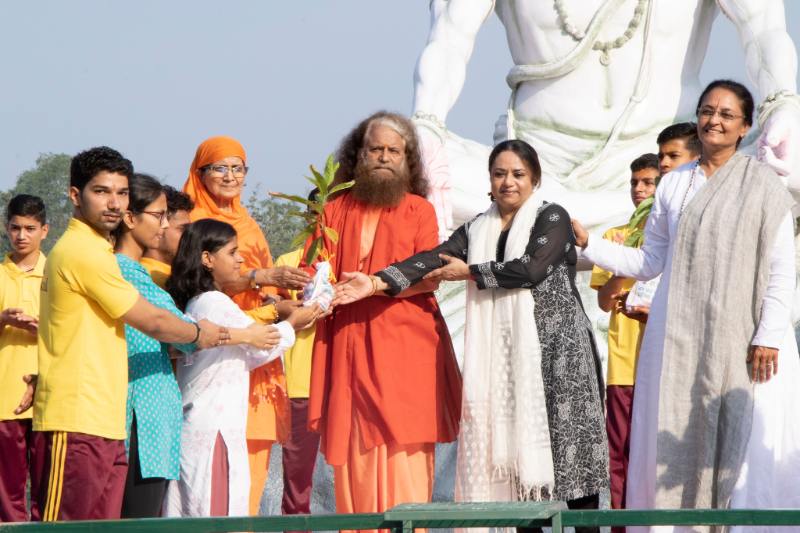 Ms Shalini Prasad from UNICEF India shared on the importance of yoga in promoting sustainable lifestyles and invited youth to lead a beautiful Mission LiFE pledge, committing us to doing all that we can to conserve, preserve and protect the environment. Four young youth from the Parmarth Gurukul Shivani, Puneet, Mayank and Muskan came together to lead the Mission Life pledge: “I pledge to make all possible changes in my daily life to protect the environment. I also commit to continuously motivate my family, friends and others about the importance of environmentally friendly habits.”