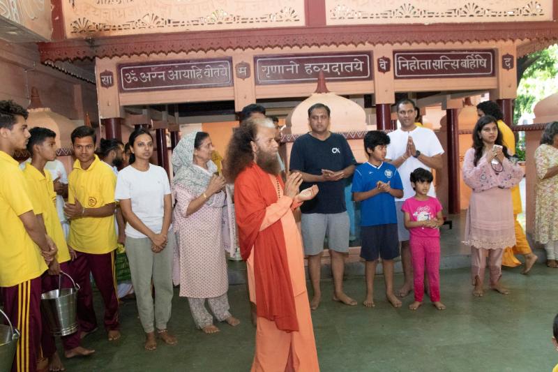 Closing the morning celebration was a divine sacred Yagya puja which was led by Pujya Swamiji, respected dignitaries and young children followed by a saatvic breakfast for all.