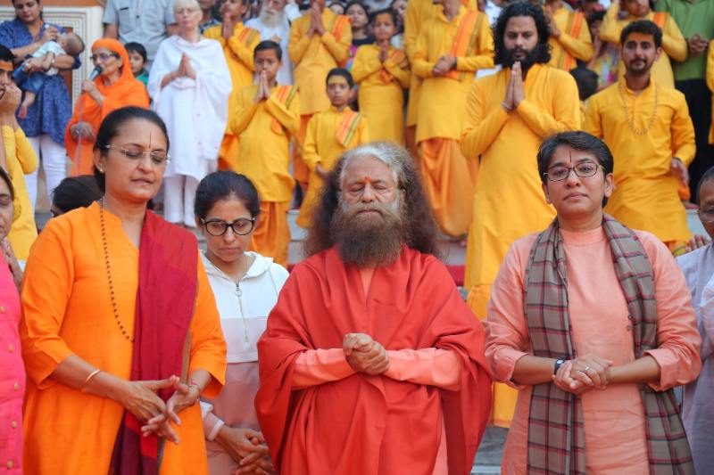 The beautiful morning began with sacred vedic chanting by Pujya Sadhvi Abha Saraswatiji and a sacred lamp lighting ceremony. Followed by special messages from Pujya Swamiji and Pujya Sadhvi Bhagawatiji on the power of Yoga and the potential of transformation and healing that it holds for the world.