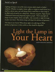 Jan 02 2012 Light the Lamp in Your Heart Published Articles, Writings Published in Tathaasthu Magazine January-February 2012 Click the images below to enlarge. Share Post