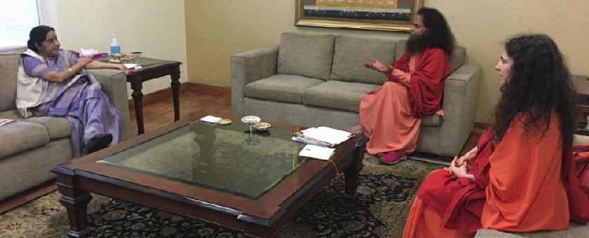 Pujya Swamiji, President of Parmarth Niketan (Rishikesh), Founder, Ganga Action Parivar and the Global Interfaith WASH Alliance (GIWA), and Sadhvi Bhagawati Saraswatiji, Secretary General of the GIWA, President of the Divine Shakti Foundation, met with Hon’ble External Affairs Minister, Smt Sushma Swarajji and discussed a number of important topics including continuing to promote Yoga amongst the global community and the upcoming International Yoga Day.
