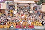 “If you love the creator, love the creation,” Pujya Swamiji said. “India believes in allness, in oneness, and togetherness. The spirit of India always believes in “Vasudhaiva Kutumbakam,” the great mantra given by the sage from this land. Sitting is important, so Ganga aarti is necessary, but we must remember we are all one.”