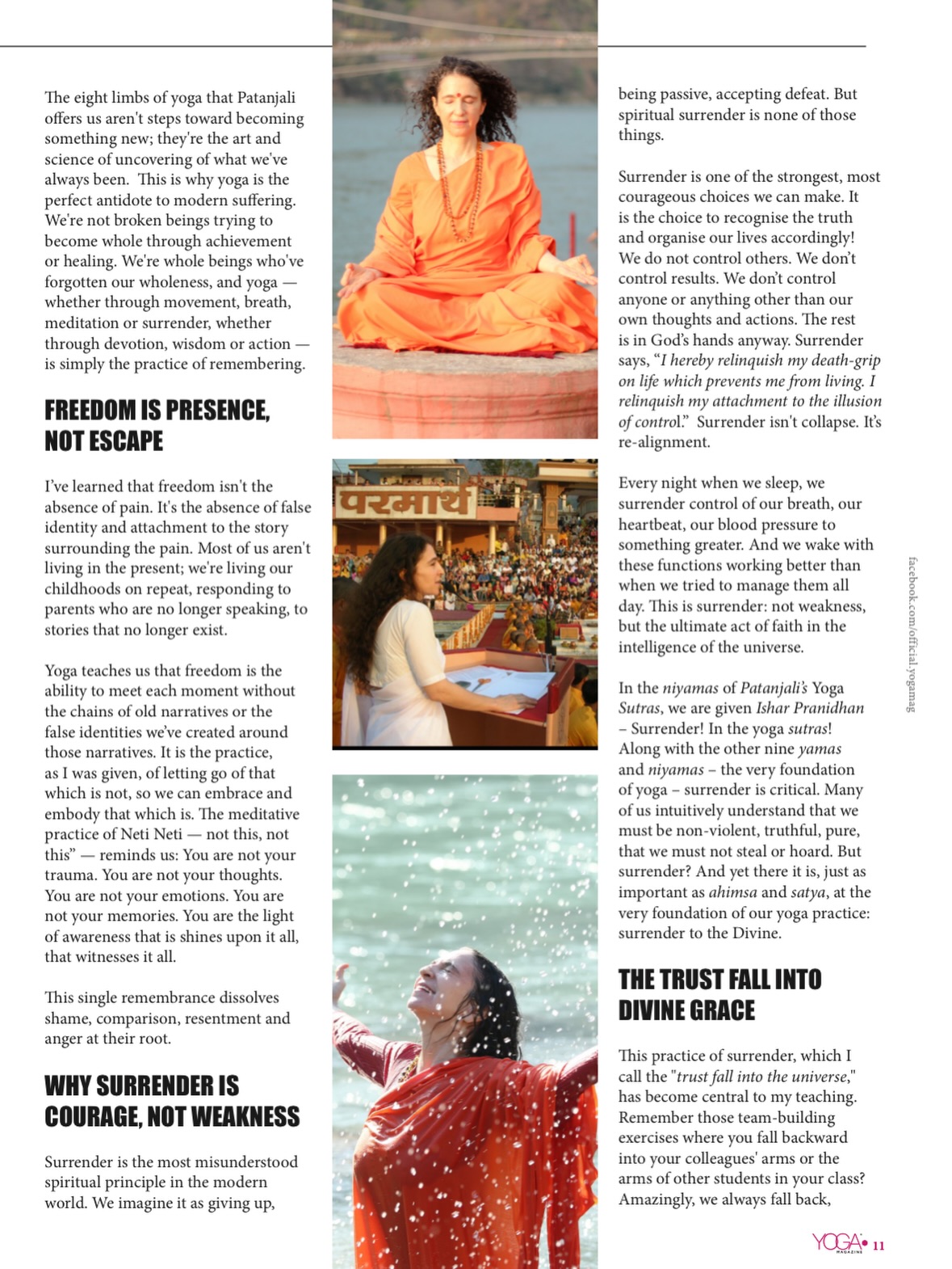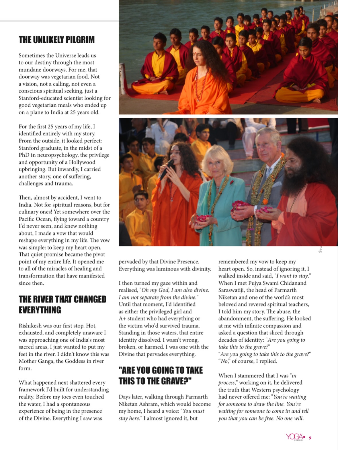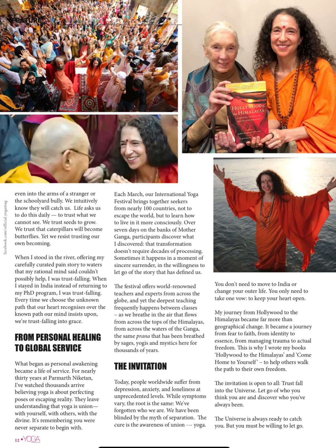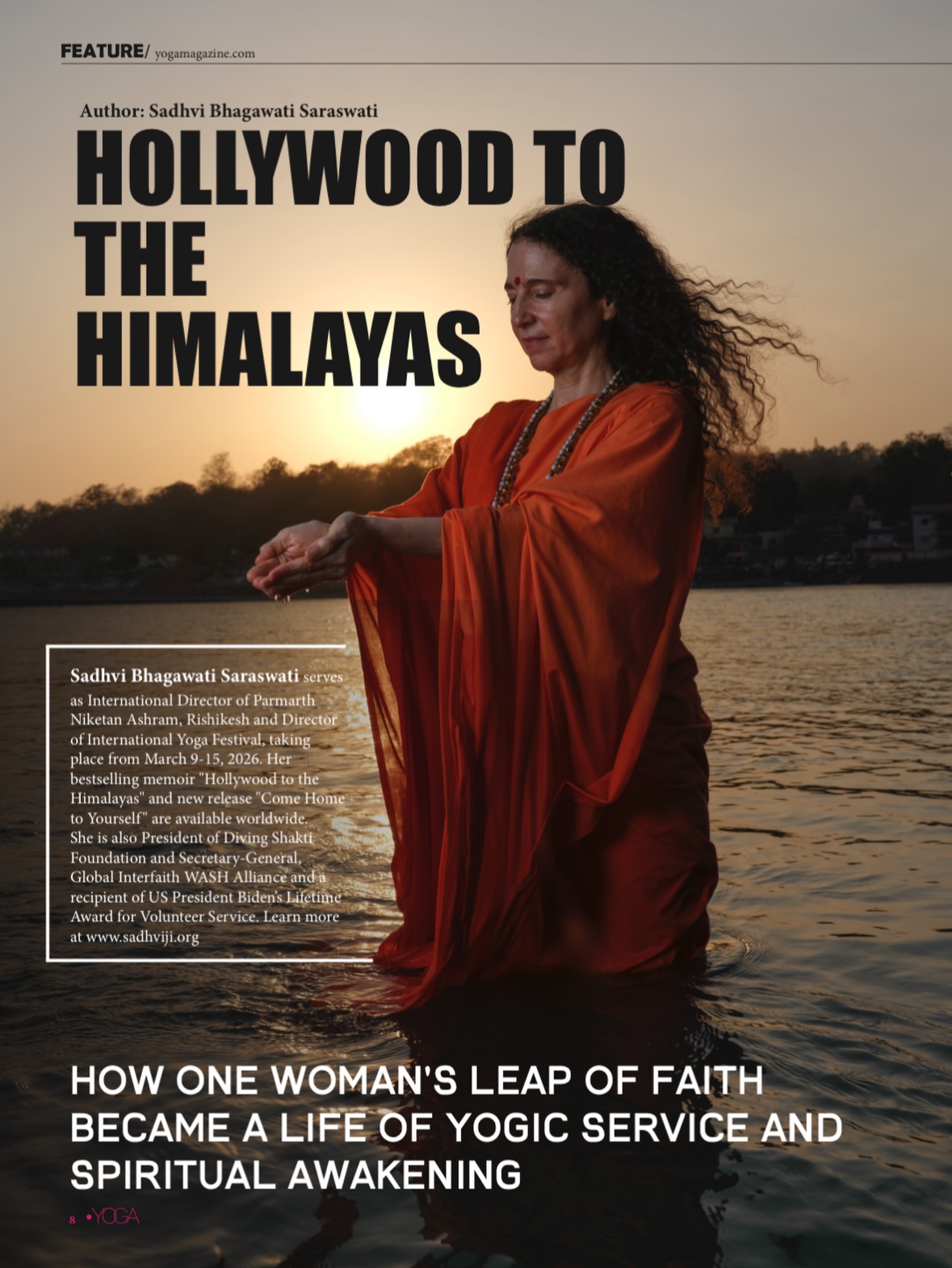 Excited to share this inspiring cover story of Pujya Sadhvi Bhagawati Saraswatiji’s incredible journey from Hollywood to the Himalayas, as featured in Yoga Magazine.