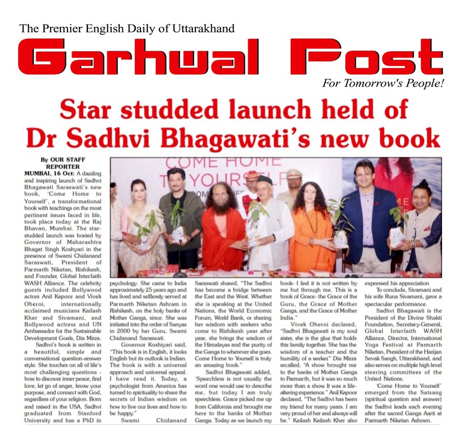 “Pujya Sadhvi Bhagawati Saraswatiji’s inspirational book Come Home to Yourself launched”, Garavi Gujarat
