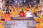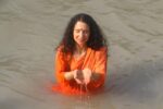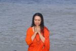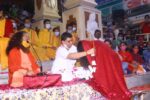 This year her birthday beautifully coincided with Mahashivratri (11th March), the Haridwar Kumbh Mela, the conclusion of our first ever online International Yoga Festival and the Hon’ble Speaker of the Lok Sabha Shri Om Birlaji and his families visit to Parmarth from the 13-14th March. On Shivratri she took part in a beautiful Shiva Abhishek and in the evening more sacred prayers and Rudrabhishek took place. The next morning a beautiful yagna on the iconic Shankar Bhagawan Ghat with her Guru Pujya Swami Chidanand Saraswatiji – Muniji and Parmarth family. Thereafter she took a joy filled Ganga Snan with devotees and sevaks bathing in the sacred waters of Maa Ganga.