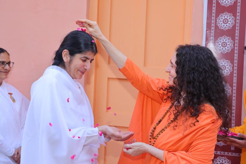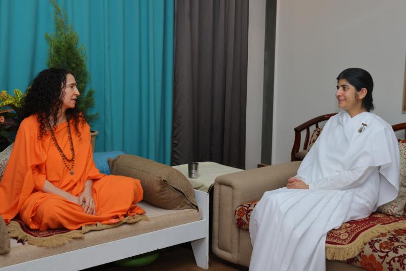 Pujya Swamiji and Pujya Sadhviji Welcome Sister BK Shivani and Brahma Kumaris Home to Parmarth Niketan