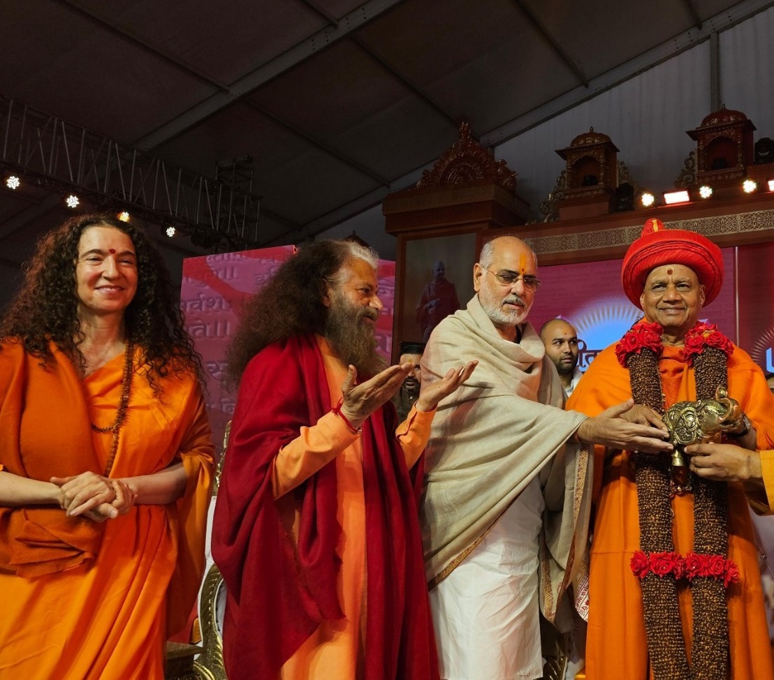 Pujya Swamiji and Pujya Sadhviji graced the Gita Bhakti Amrit Mahotsav in Pune, in celebration of the 75th birth anniversary of respected Swami Shri Govinda Dev Giri ji Maharaj. It was a beautiful blessing to join Kanchipeethadhishwar Jagadguru Shankaracharya, Pujya Shri Vijendra Saraswati Ji Maharaj; Chief Minister of Uttar Pradesh, Hon’ble Yogi Adityanath Ji; Yogaguru Swami Ramdev Ji; MM Swami Avdheshanand Giri Maharaj Ji; Sant Shri Bhaishri Rameshbhai Oza ji (Pujya Bhaishri); Acharya Balkrishna ji; Malukpeethadhishwar Swami Rajendra Das Ji Maharaj ji; Deputy CM of Maharashtra, Shri Devendra Fadnavis ji; and many other spiritual luminaries and government leaders.