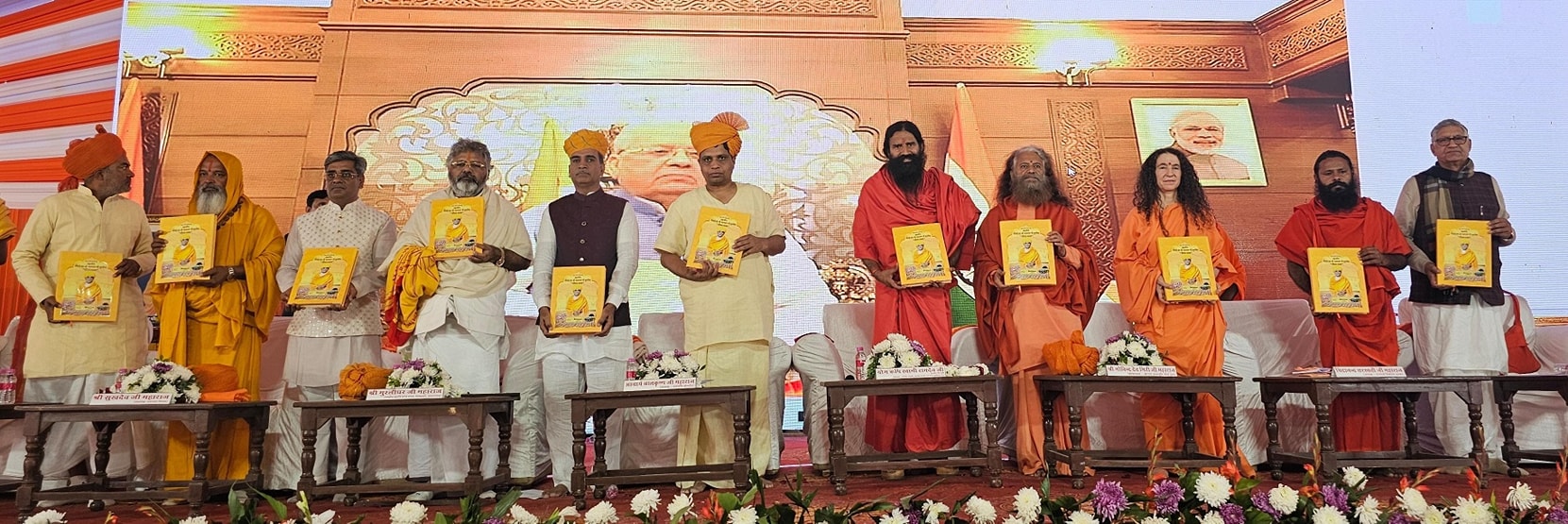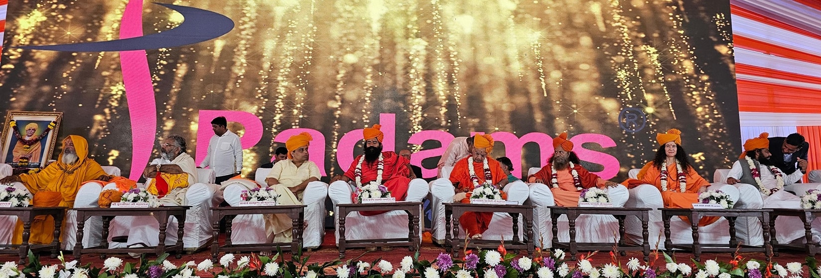 Sadhvi Bhagawatiji joined renowned faith leaders HH Param Pujya Swami Chidanand Saraswatiji – Muniji, Hon’ble Governor of Rajasthan, Shri Kalraj Mishraji (online), Yogaguru Swami Ramdevji, Swami Govindadev Giriji, Acharya Bal Krishna, Sant Shri Murlidharji and other leaders in inaugurating a beautiful Padma Memorial, Inspiration Hall, Library and Museum celebrating the life of Sant Padmaram Ji Kulariya in Bikaner, Rajasthan. The event celebrated not only Padmaramji’s life but also the great values and ethics of Indian culture that emphasize selfless service and seeing the Divine in all.