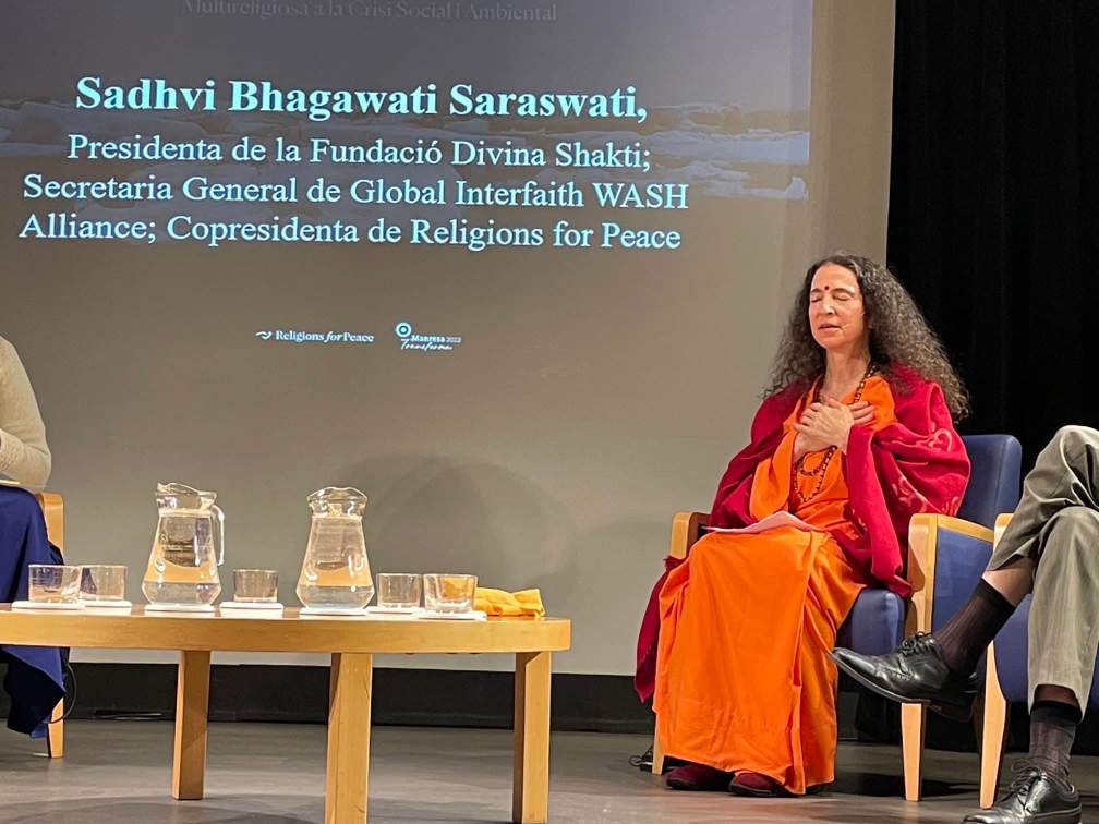 Sadhviji was in Manresa, Spain at the special Religions for Peace conference of “At a Crossroads – a Multireligious and Intergenerational Response to Social and Environmental Crises.” The first day they did a sacred walk of the Camino de Santiago, and Sadhviji spoke in the opening plenary on creating peaceful, sustainable cities. She shared the work that our Global Interfaith WASH Alliance is doing in India for water, sanitation & hygiene and also for so much more — menstrual hygiene, gender equality, ending gender based violence, lifeskills education, ending early child marriage and massive tree plantation programs for climate change abatement.