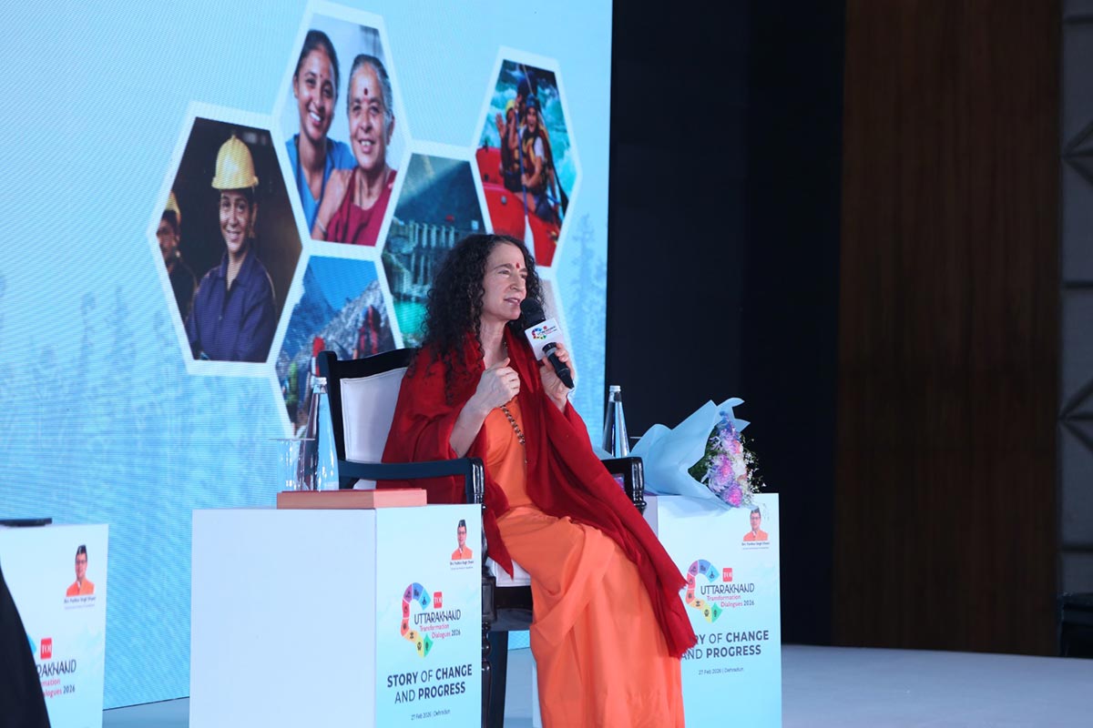 Sadhviji spoke about the transformation that she personally experienced in the lap of the Himalayas, on the banks of Mother Ganga, through the cultural tradition and teachings of this land, and the incredible power of transformation she has seen in so many. She emphasized that Uttarakhand is not a place that only gives teachings, but also a sacred divine touch and the powerful potential for transformation.