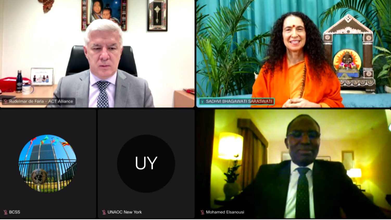 Sadhviji joined Mr. Miguel Ángel Moratinos, Under-Secretary-General, High Representative for the United Nations Alliance of Civilizations; Alice Wairimu Nderitu, Under-Secretary-General and Special Adviser on the Prevention of Genocide to the United Nations Secretary-General; Dr. Mohamed Elsanousi Executive Director of The Network for Religious and Traditional Peacemakers; Rabbi Burton L. Visotzky (The Jewish Theological Seminary – JTS), Appleman Professor Emeritus of Midrash and Interreligious Studies at The Jewish Theological Seminary – JTS; Debra Boudreaux Chief Executive Officer of the Buddhist Tzu Chi Foundation; and Rudimar Bueno de Faria, General Secretary at ACT Alliance for a powerful Side Event to the 75th Anniversary commemoration of the Convention on the Prevention and Punishment of the Crime of Genocide.